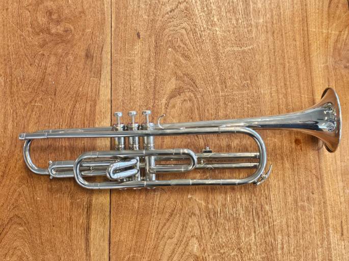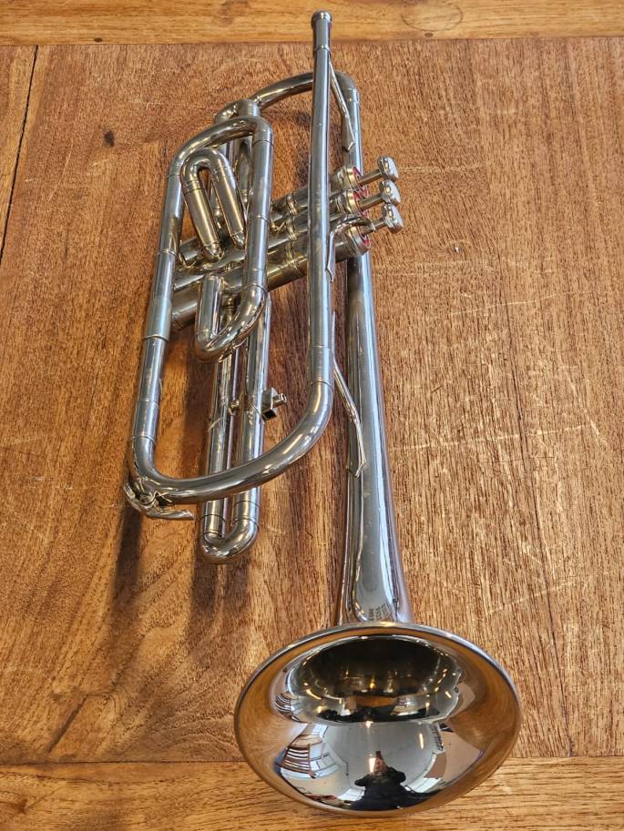 This high-quality Eb bass trumpet, made by the esteemed Kühnl & Hoyer brand, offers exceptional versatility. It can be played with both an alto horn mouthpiece and a trumpet mouthpiece, allowing you to explore different sound qualities and musical styles. The instrument has been thoroughly checked and is in excellent playing condition. It comes with a case for easy storage and transportation. Whether you’re a professional musician or a dedicated student, this bass trumpet is a fantastic addition to any brass collection.