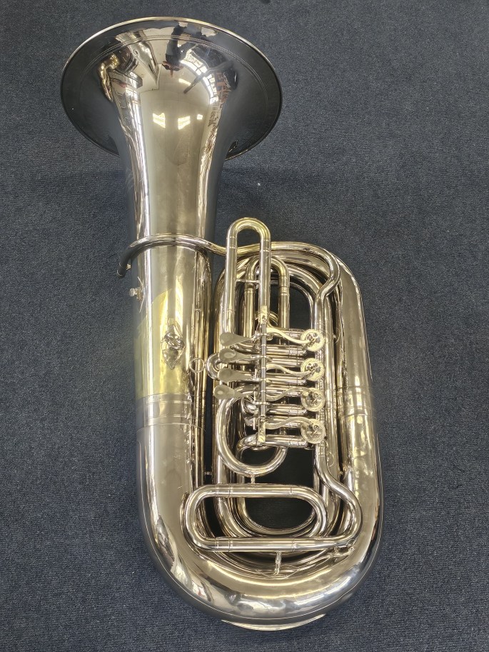 For sale: a Miraphone Model 186 BBb tuba innickel-plated finish.
