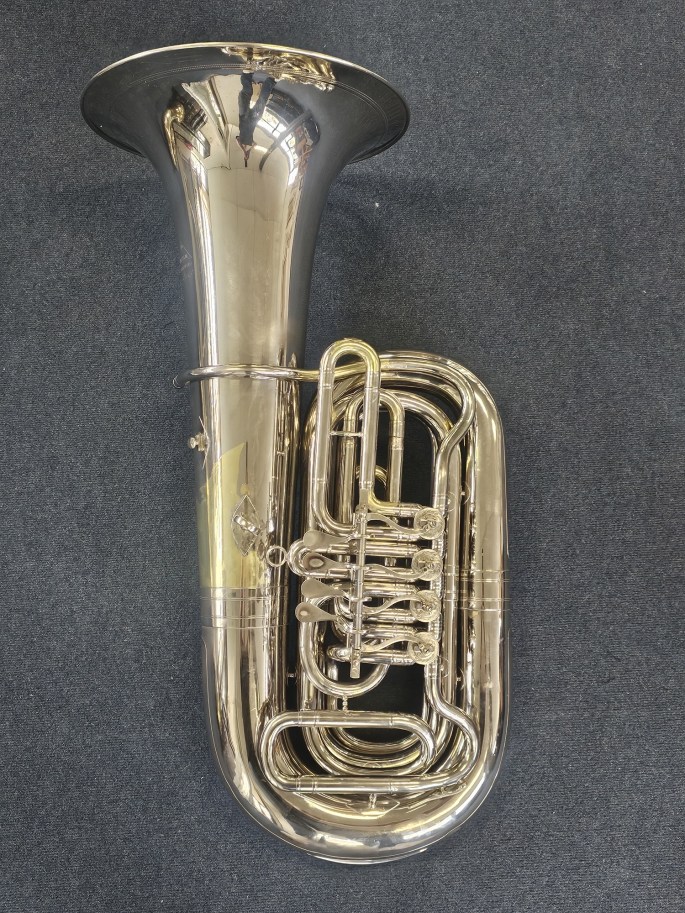 Zu verkaufen: eine Miraphone Modell 186 B Tuba in vernikkelter Ausführung.