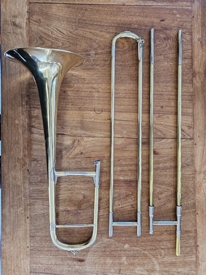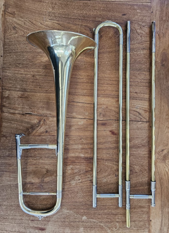 Slide works great and tunings slide is easily moveable. Has been chemically cleaned and polished by hand.