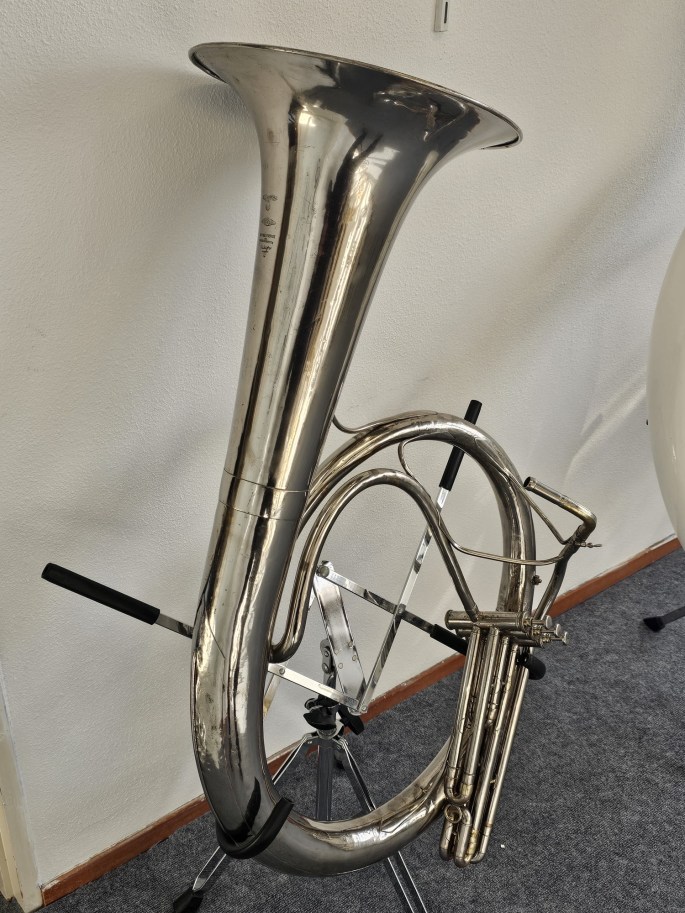 Een bijzondere Es Helicon Tuba, gebouwd in de jaren 30 door de Nationale Fabriek van Muziekinstrumenten Tilburg, beter bekend als Kessels. Dit historische instrument is volledig nagekeken en speelklaar.