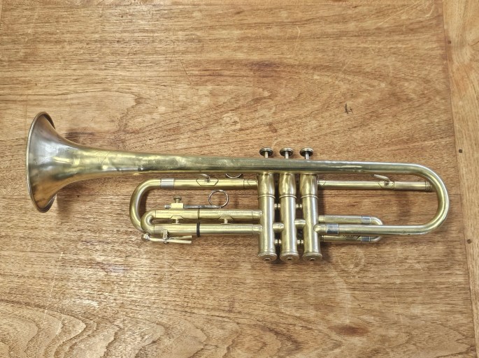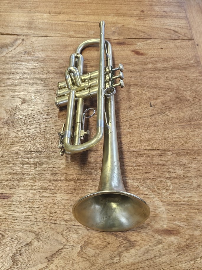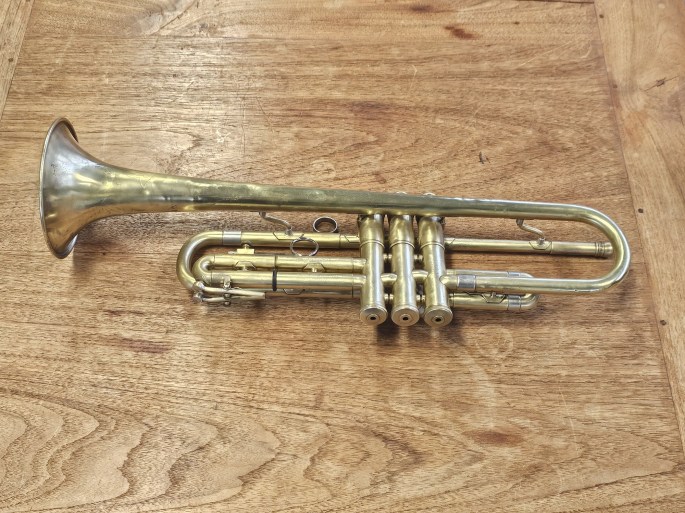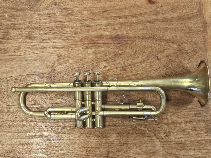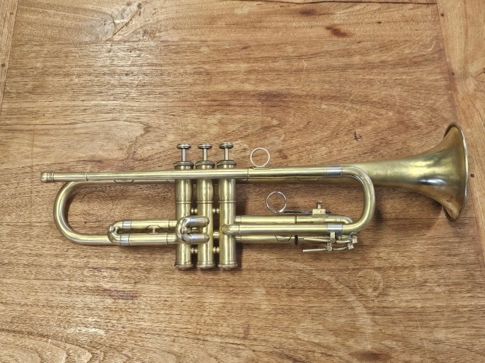 Een klassieke Bb-trompet, model Ambassador, gemaakt door Olds Fullerton. Dit instrument is grondig geïnspecteerd en verkeert in goede staat. Het biedt een heldere, zuivere klank met een uitstekende projectie.