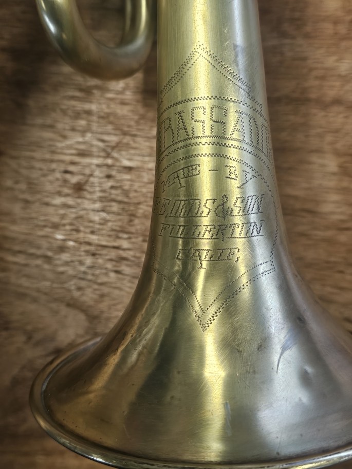 A classic Bb trumpet, model Ambassador, made by Olds Fullerton. This instrument has been thoroughly inspected and is in good condition, offering a bright, clear tone with excellent projection.