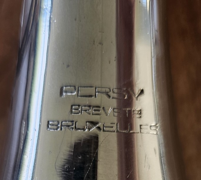 A finely crafted Bb trumpet, made by Persy from Bruxelles. This instrument has been thoroughly inspected and is in good condition, offering a clear and beautiful tone.