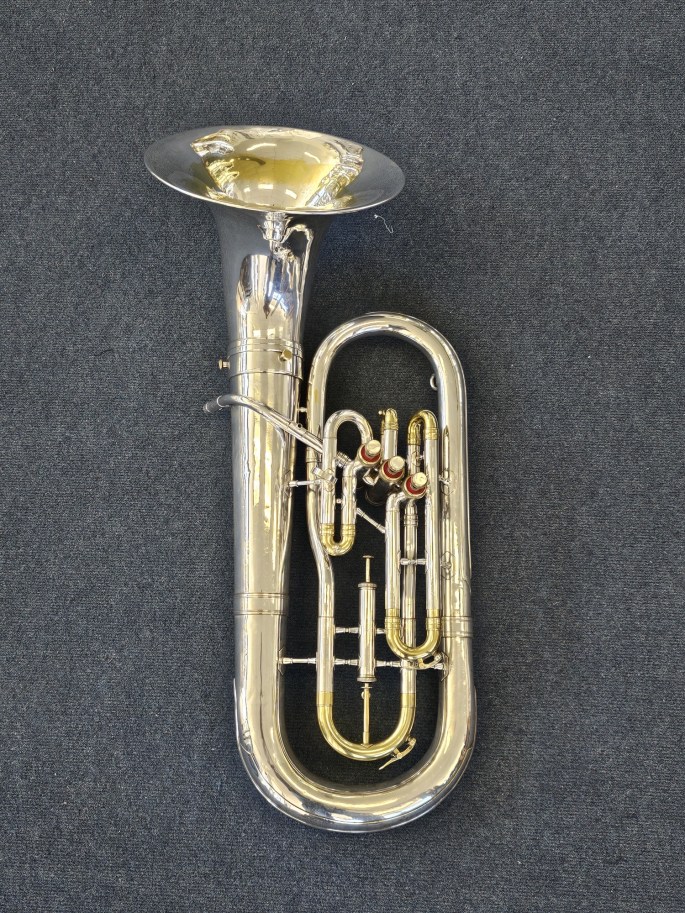 This high-quality baritone features a front-facing bell and is equipped with a mechanical trigger on the main tuning slide, allowing for precise intonation adjustments while playing.