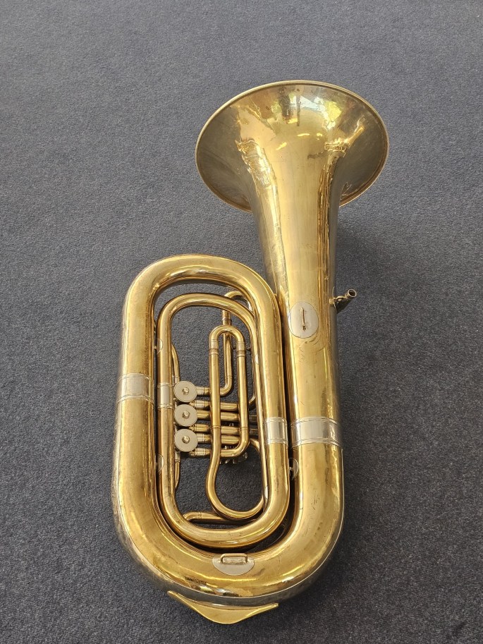 A high-quality 3/4 BBb tuba, made by Rudolf Meinl, one of the most respected tuba makers in the world. The engraving “Rumedies” stands for RUdolf MEinl DIESpeck, referring to the location of the workshop. This instrument has been thoroughly inspected and is in good condition.