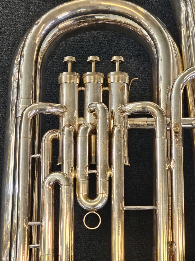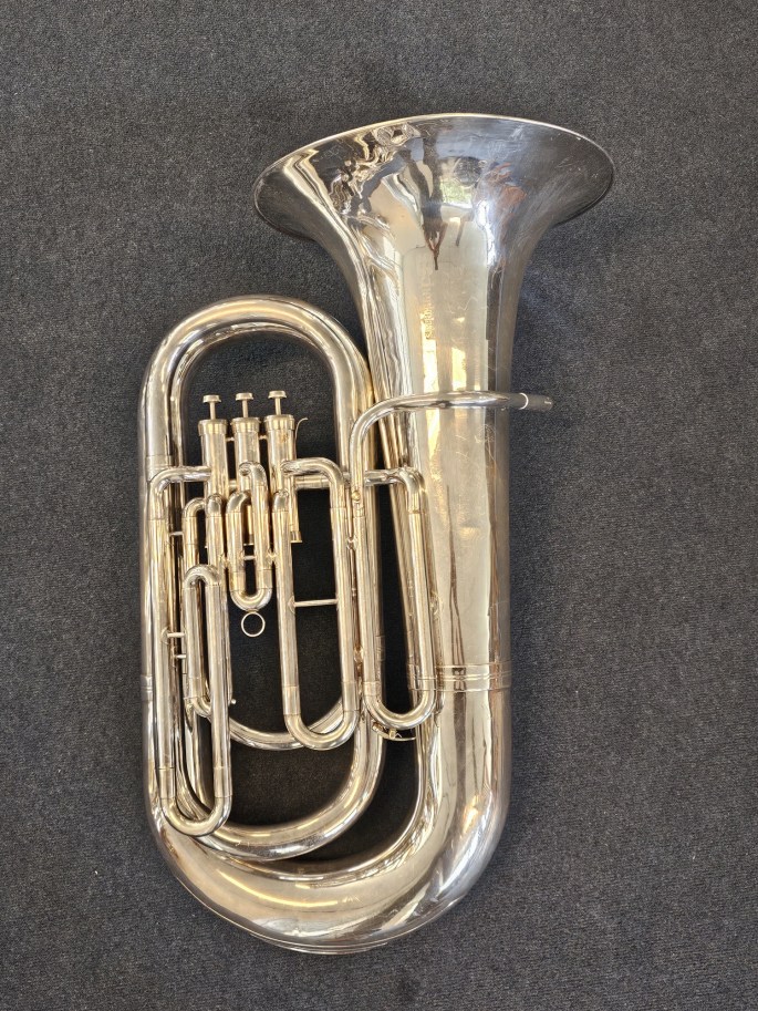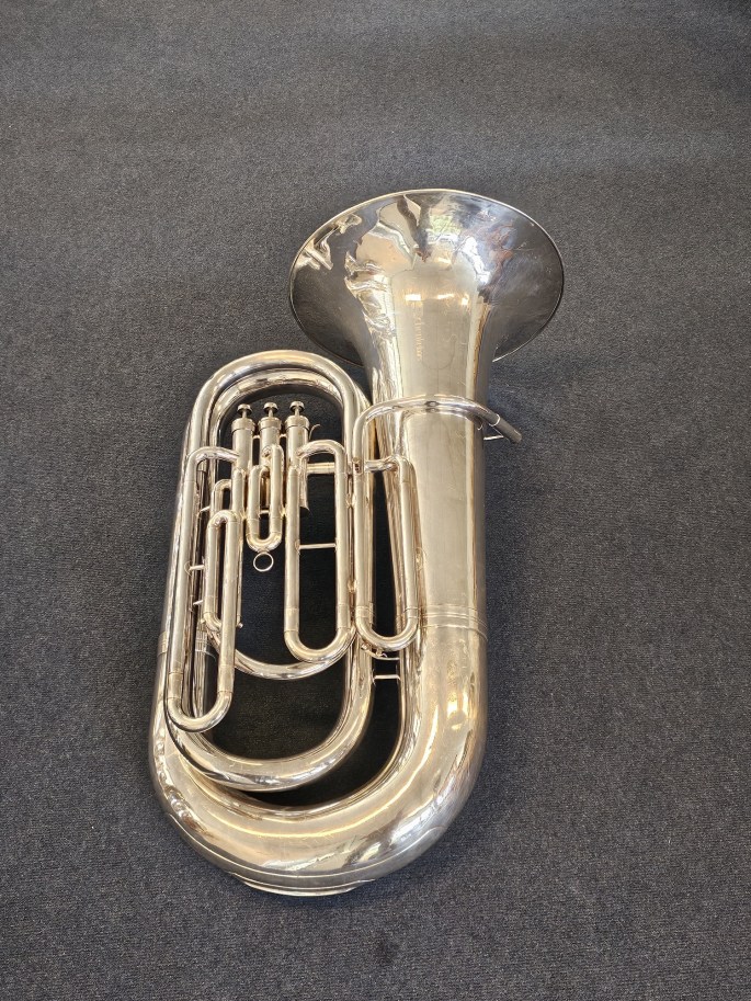 A well-crafted BBb tuba, made by Schenkelaars, a respected Dutch instrument maker. This instrument has been thoroughly inspected and is in good condition, offering a rich and resonant sound.
