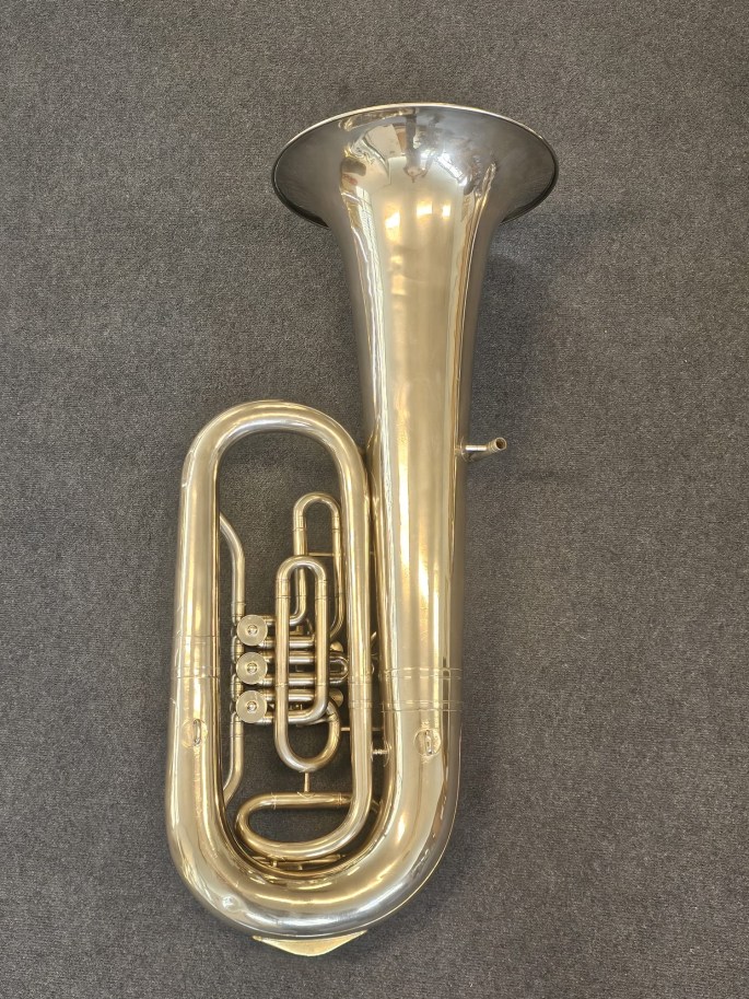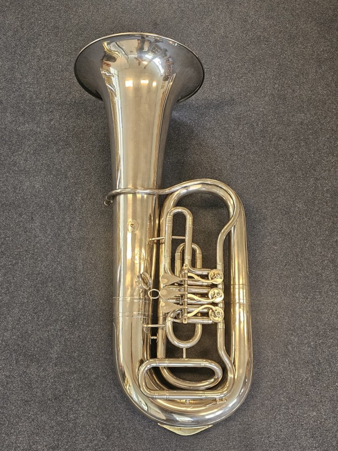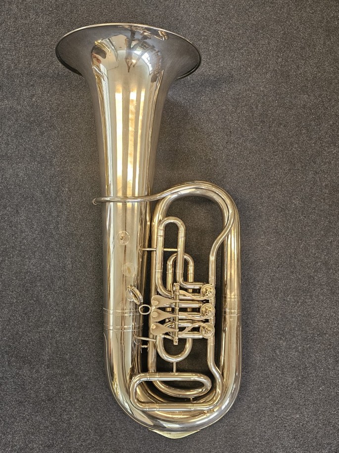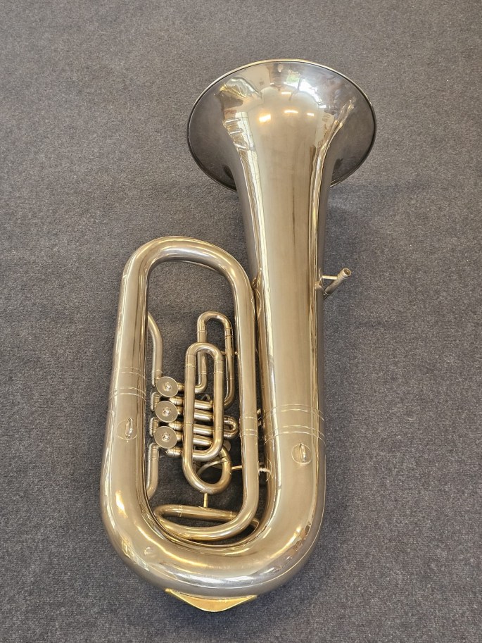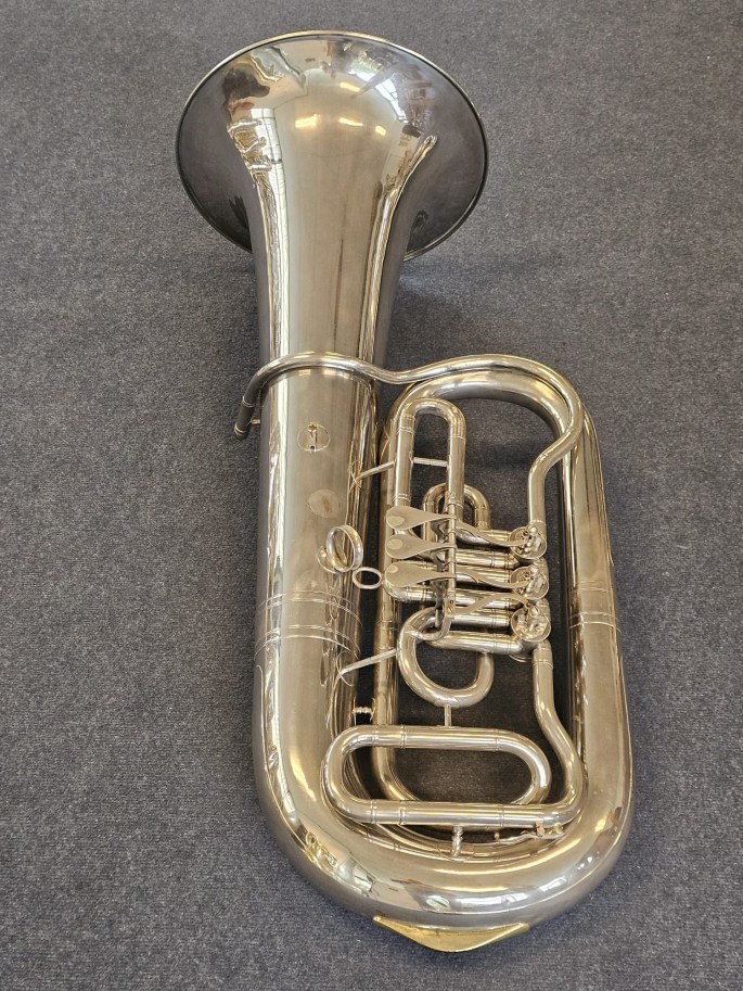 Sehr schöne vernickelte Es-Tuba von Meinl, die ohne Gravur verkauft wurde (warscheinlich Schenkelaars).