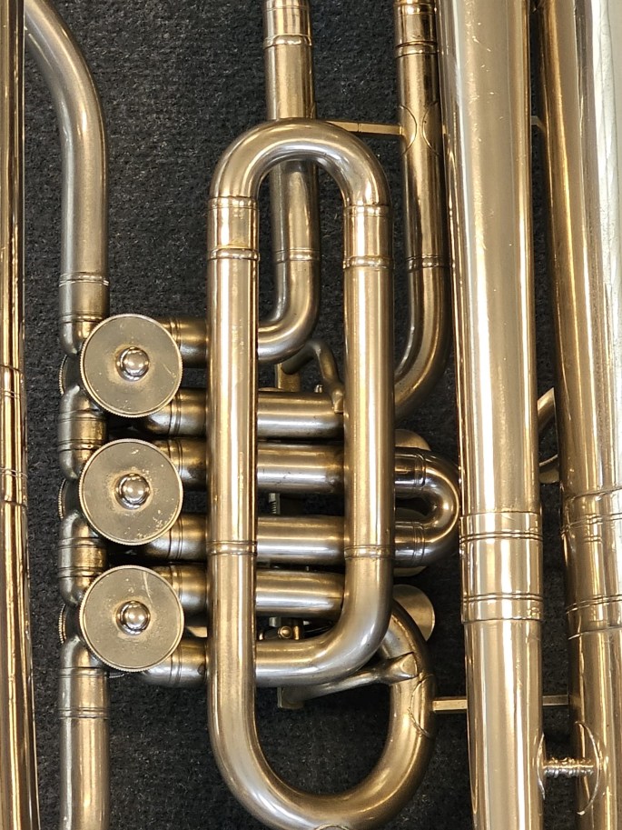 Deze 3-cilinder Eb Tuba speelt erg goed en is in goede staat. Alle ventielen en schuiven zijn gemakkelijk te bewegen en de compressie is goed.