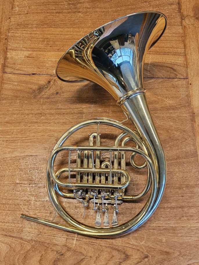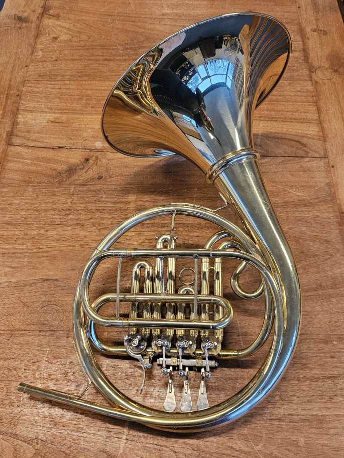 Dit instrument heeft een afneembare beker en is daardoor makkelijk te vervoeren (platte koffer). De hoorn is schoongemaakt en alle ventielen en schuiven zijn gemakkelijk te bewegen.