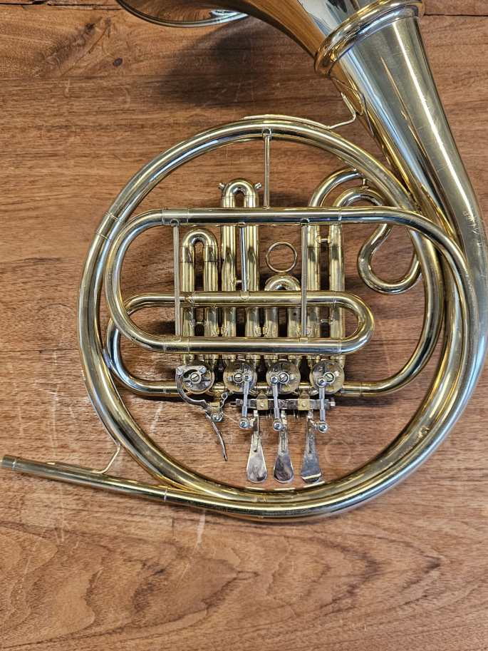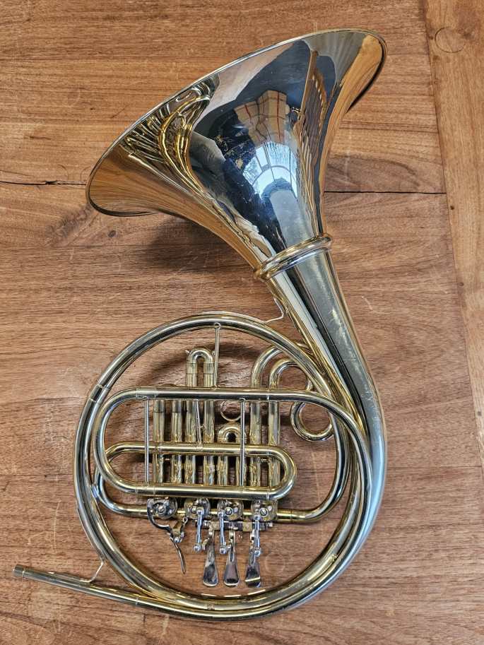 Dit instrument heeft een afneembare beker en is daardoor makkelijk te vervoeren (platte koffer). De hoorn is schoongemaakt en alle ventielen en schuiven zijn gemakkelijk te bewegen.