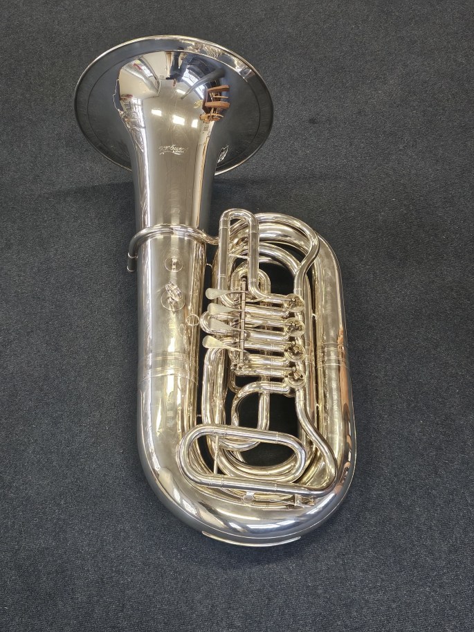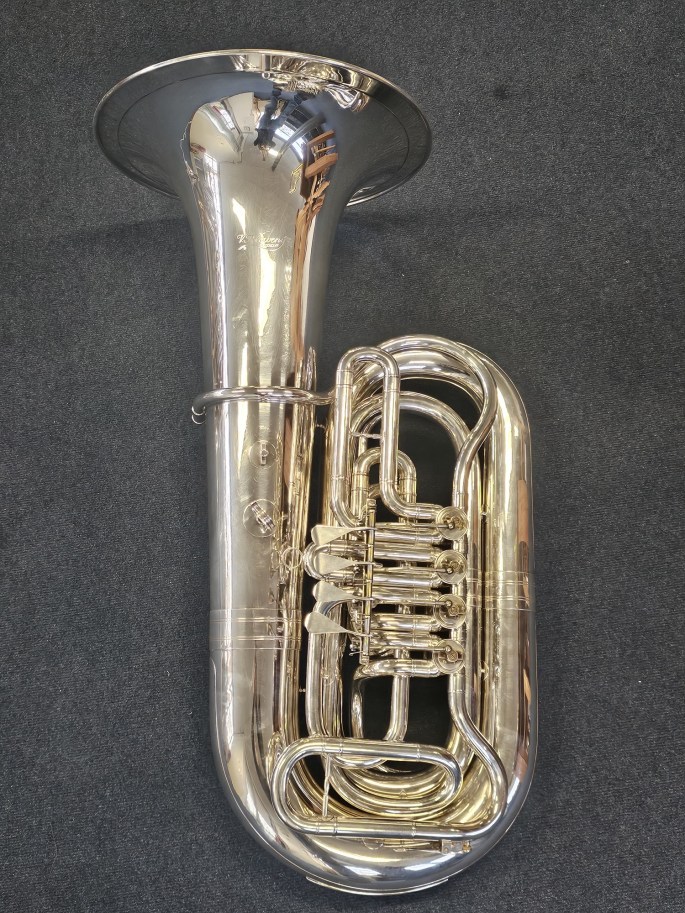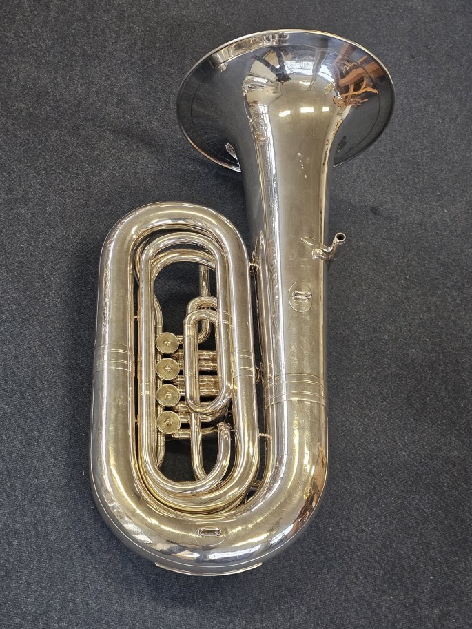 Diese 4/4 B-Tuba von V.F. Červený, Modell CBB-686, ist ein bewährtes Instrument, bekannt für seinen warmen, vollen Klang und die solide Verarbeitung. Die Tuba wurde komplett überprüft und befindet sich in gut spielbarem Zustand.