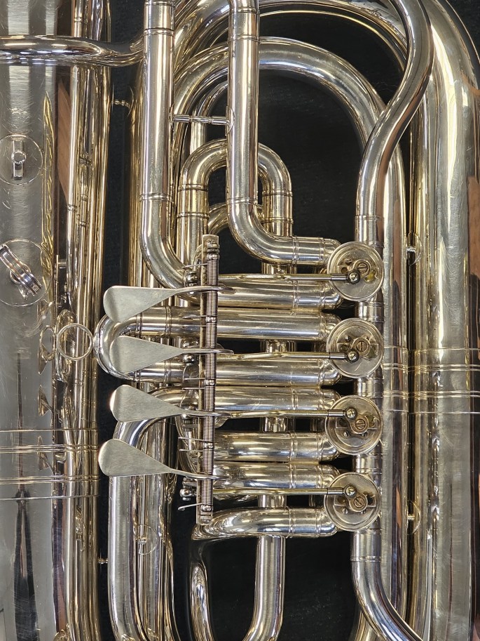 This 4/4 BBb tuba by V.F. Červený, model CBB-686, is a well-known and reliable instrument appreciated for its warm, full sound and solid craftsmanship. The instrument has been fully checked and is in good playing condition.