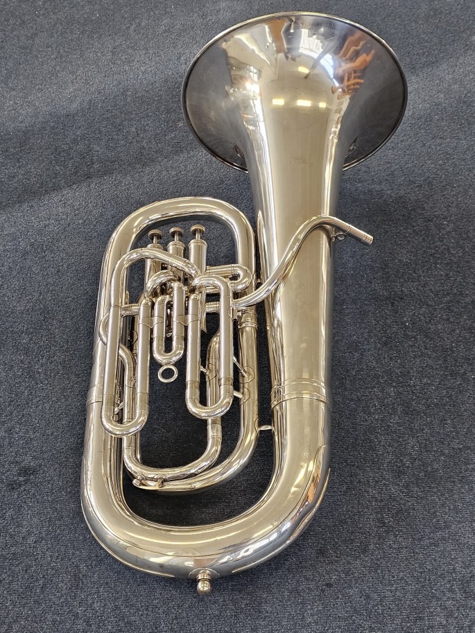 A high-quality Eb tuba by Willson, featuring a 3-valve compensating system. This instrument has been fully inspected and is ready to play.